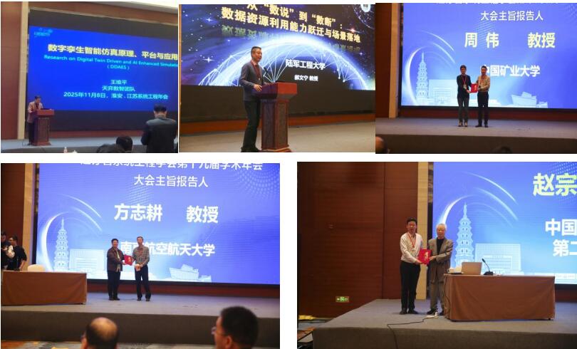 江苏省系统工程学会第十九届学术年会暨第六届高铁文化国际交流论坛分年会大会报告和分组论坛及高铁文化国际交流论坛三部分。第一部分为:11月8号上午大会邀请原国防科技大学系统工程学院王维平教授、陆军工程大学郝文宁教授、中国矿业大学周伟教授、南京航空航天大学方志耕教授、中国电子科技集团第二十八研究所原总工赵宗贵研究员分别做了关于《数字孪生智能仿真原理、平台与应用》《从数说到数断:数字资源利用能力跃迁及场景落地》《矿业领域人工智能基础与进展》《民用飞机的健康检测与管理关键问题》《智能和智能认知体系》五个主旨大会报告,报告专家结合各自领域与先进科研技术和成果,给大家做了特别精彩的报告,期间不断赢得全场会员阵阵热烈的掌声。