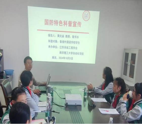2025年10月3日上午,江苏省系统工程学会联合秦淮外国语学校共同促进科普宣传进校园活动,以“学习科学家精神、宣传社会正能量”,特邀请南京理工大学教授、长江学者徐胜元教授,以及江苏省系统工程学会秘书长黄炎焱教授,向秦淮外国语学校的师生和家长们介绍系统与控制及其在国防军工的应用知识,两位教授与秦淮外国语学校师生亲切交流,形成了“学习科学家精神、宣传社会正能量”的氛围。
